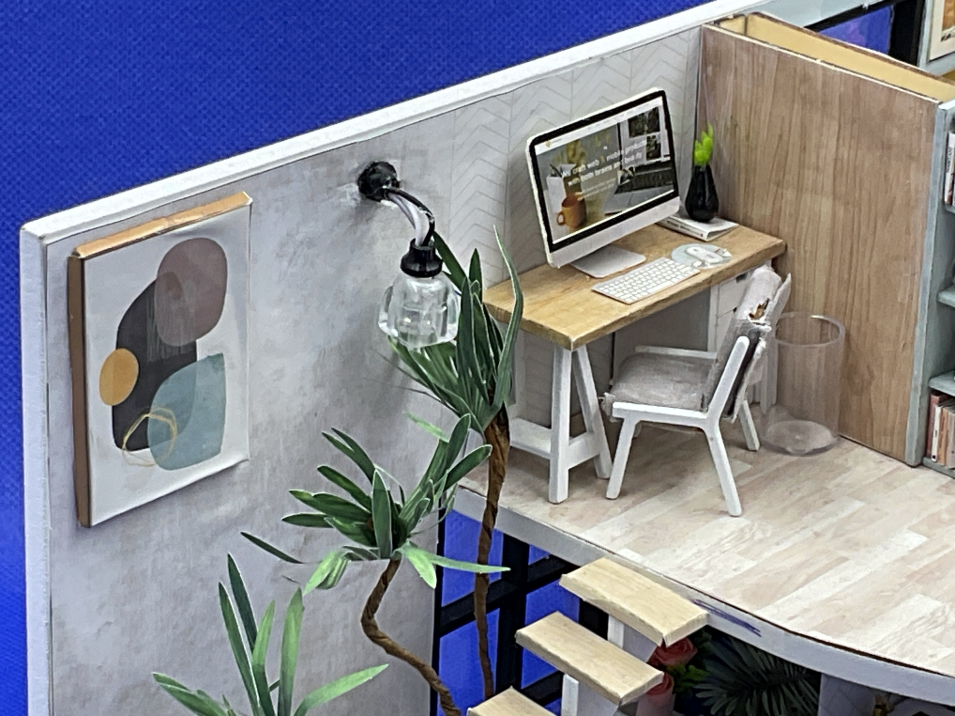 Welcome to our charming miniature two-floor home, a perfect blend of cozy living and casual elegance. This meticulously crafted model showcases a modern yet timeless design, capturing the essence of a comfortable and inviting family home.
