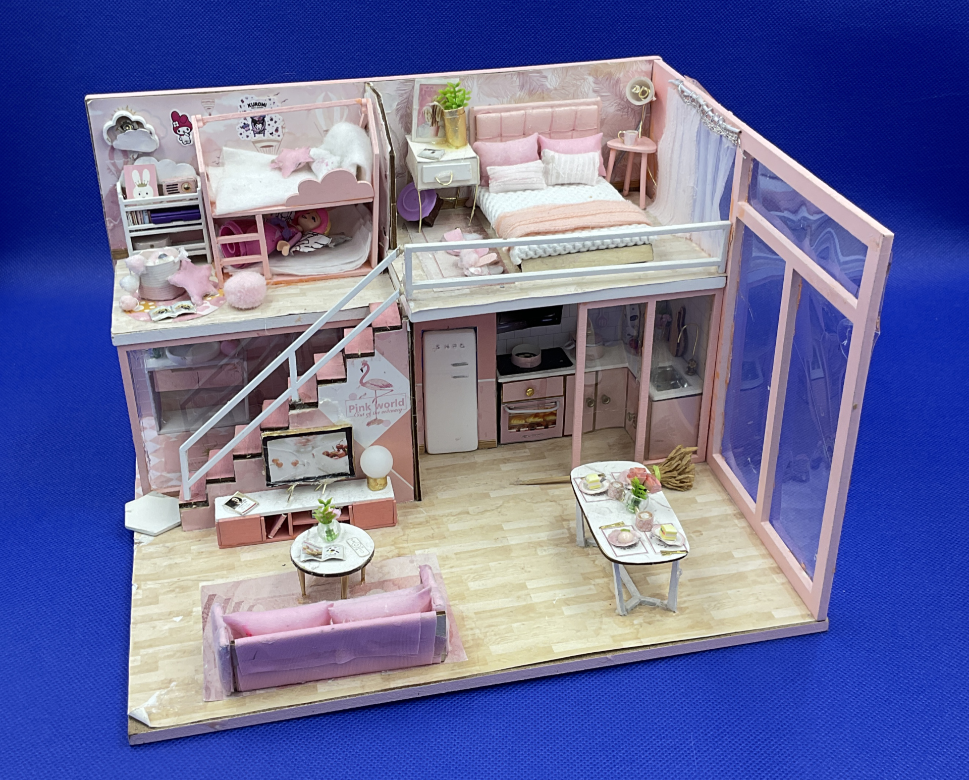 Welcome to our delightful miniature family home, designed to capture the essence of joyful family living. This two-floor model is perfect for showcasing the vibrant and dynamic life of a family with children, complete with charming details and cozy spaces.